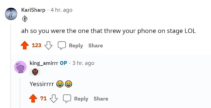В комментариях под постом он подтвердил, что это он подбросил на сцену телефон.