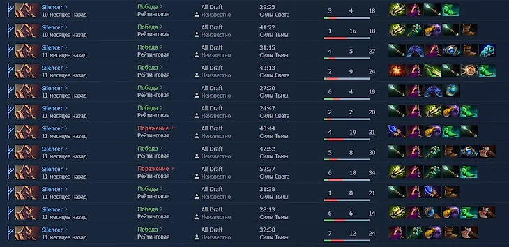 Сайленсер – чуть ли не любимейший мой персонаж. На Опендоте меня до сих пор можно найти в числе 25 лучших сайленсеров в матчмейкинге. Это, конечно, не великий показатель, но какой есть. А нынешним билдом героя я играл еще 11 месяцев назад и знаю о нем абсолютно все. Чем с вами и поделюсь.