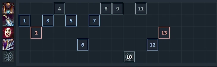 Если линия очень простая, например те же 2 милишника без спеллов, то можно качаться через Глейвы – 1-4-1-1 – и выходить в билд через урон с руки. Если линия так себе или средняя, а враги кастуют 4 спелла – выходим в 4-1-1-1 и максимально быстрый Вейл.