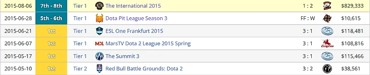 Как только Secret 2015 года собралась, команде уже прочили большое будущее: в составе были Пуппей, Куро, Зай, s4 и Артизи. Скоро они показали, что хороши не только на бумаге. Перед пятым TI игроки сильно разогнались и взяли четыре турнира, на которых обыгрывали даже будущих чемпионов Инта – EG. С Dota Pit Secret снялась, но даже так заняла 5-6-е место.