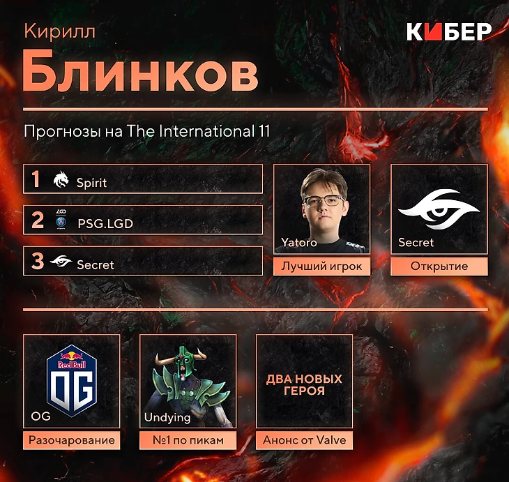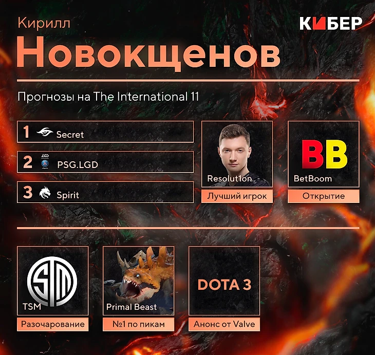 Team Spirit – минимум в топ-4, Резоль и Яторо – MVP. Прогнозы Кибера на TI11