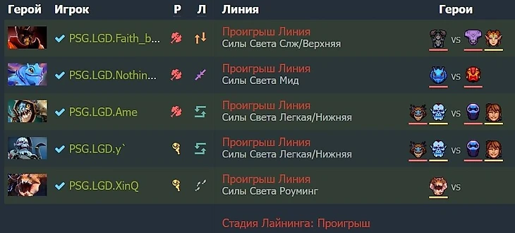 PSG.LGD не выиграла практически ни одной линии на старте турнира. Даже хорошими героями