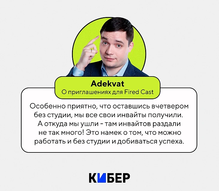 Конечно же, это безумно приятно. Потому что я последние несколько месяцев работал со всеми из Fired Cast, мы чаще стали видеться. И мне безумно приятно, что они получили такое же вознаграждение, как и я.