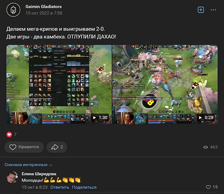 Мама Антона «Dyrachyo» Шкредова, Елена, попала в заголовки всех киберспортивных медиа после того, как начала активно болеть за сына в группе ВК Gaimin Gladiators.