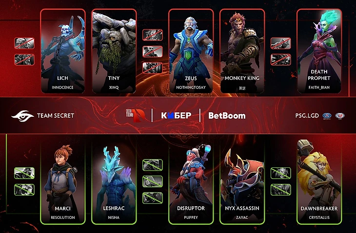 В, пожалуй, центральном матче первого тура плей-офф встречались европейский коллектив Team Secret и китайский гранд PSG.LGD. Фаворитами в прематче ставили LGD, предлагая на них коэффициент 1,58 против 2,40 на дружину Пуппея.