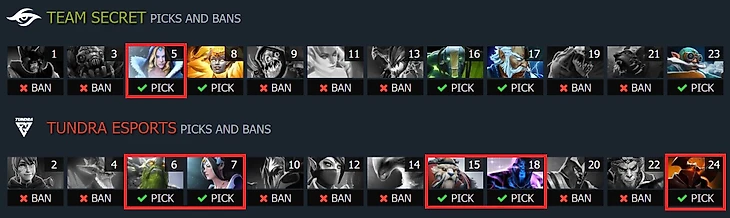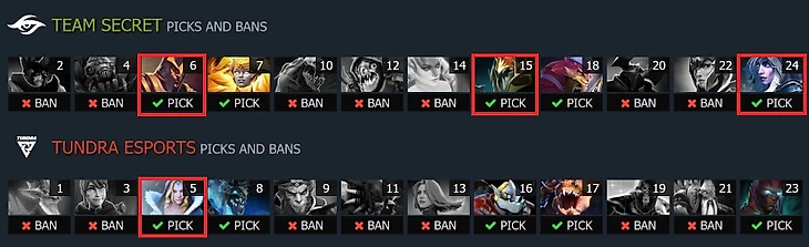 Для пущей наглядности давайте проанализируем последние 2 игры Мэйден в плей-офф, обе из финала верхней сетки The International 2022 – Tundra против Secret.
