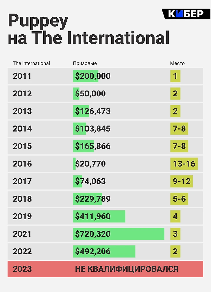 На этом TI у Пуппея появился принципиальный соперник. Команда проиграла Liquid и заняла 12-е место.