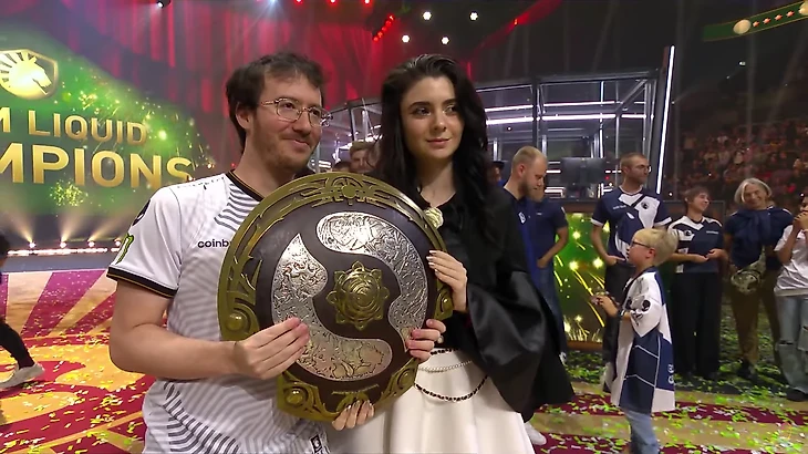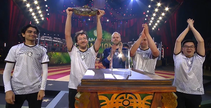 Liquid – чемпион The International 2024, и после победы первым поднял Аегис капитан команды Нета «33» Шапира.