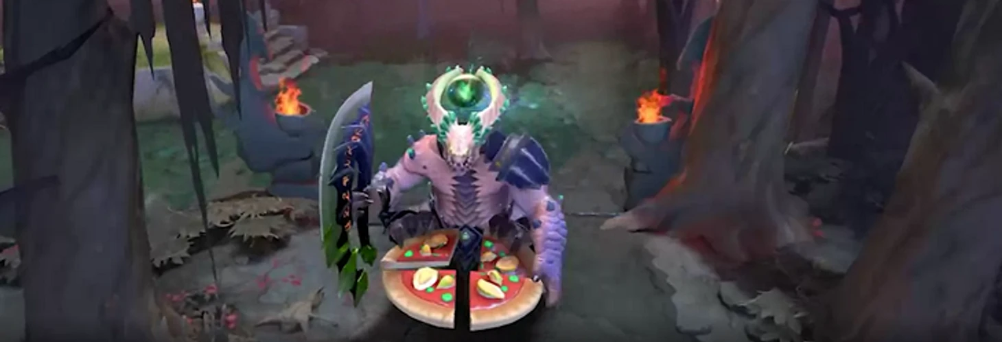 Андерлорд нарезает пиццу на 4 кусочка и затем съедает ее.