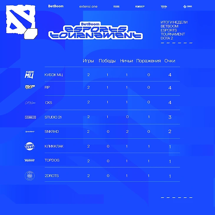 Турнирные таблицы Dota2 и CS:GO по итогам второй недели: