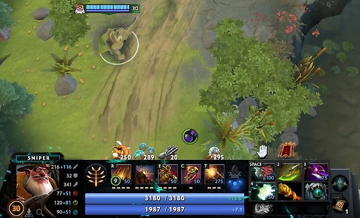 И это еще одна огромная проблема, даже если мы не берем в расчет уровень и таланты: способности Снайпера не стоят маны ни на старте, ни в мидгейме. С одной лишь Пикой уже не возникают ситуации, когда ресурсов не хватает. Вы ведь заметили, что никто и никогда на Снайпере не покупает Базилку или Фалькон, когда на условных СФ’е или Траксе это база. А способностей Снайпер использует не меньше.