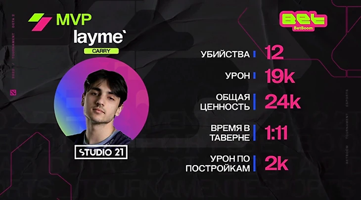 Персонаж с первых же минут начал гонять вражеских саппортов и душить курьеров. Дабл-киллы для героя были абсолютной нормой. Уже после 20 минут преимущество STUDIO 21 составило более 18 тысяч голды. С таким перефармом ребята быстро закончили игру — RIP сдалась на счете 41-16 по киллам. Лучшим игроком карты заслуженно стал LAYME, Дум которого будет сниться RIP в кошмарах. Если, конечно, команда не найдет способ свести серию к ничьей.