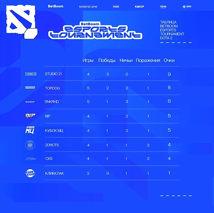 Игры медиалиги BET продолжатся 5 декабря. По итогам этой турнирной недели тройку сильнейших возглавили STUDIO 21, которая сегодня выиграла 2-0, TOPDOG, которая победила с таким же счетом, и SNKRHD, замыкающая тройку результатом в 6 очков после 5 игр. Для получения оперативной информации обязательно подписывайтесь на наш Telegram-канал!