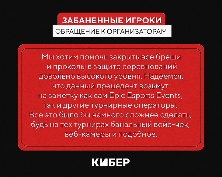 Игроки сами связались с Кибером и попросили площадку для публикации, мы приводим их текст без изменений.