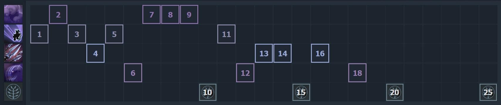 Раскачка, которую привожу я, чуть меньше рассчитана на исходящий от тебя урон в ерли-гейме и чуть больше – на максимальную пользу в драке и при ганке уже на 10-м уровне. Но разница не настолько критична.