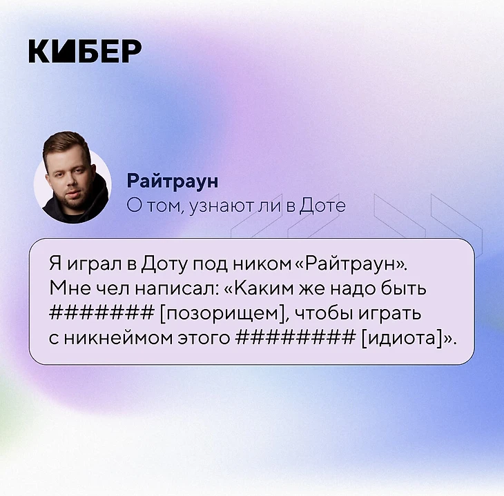 Один раз смешно было: я играл под своим ником «Райтраун». Мне чел написал: «Каким же надо быть ####### [позорищем], чтобы играть с никнеймом этого ######## [идиота]».