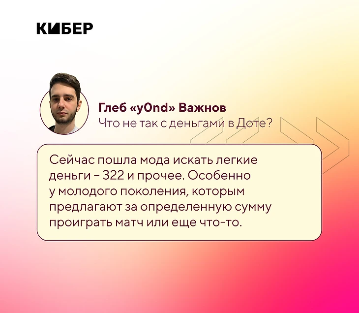 Но многим ребятам, заканчивающим 11-й класс или сидящим на родительской шее, предлагают определенную сумму. И они думают, что круто проиграть одну карту или сделать исход, который никак не влияет на победу. Я считаю, что это вообще позор высшей степени.
