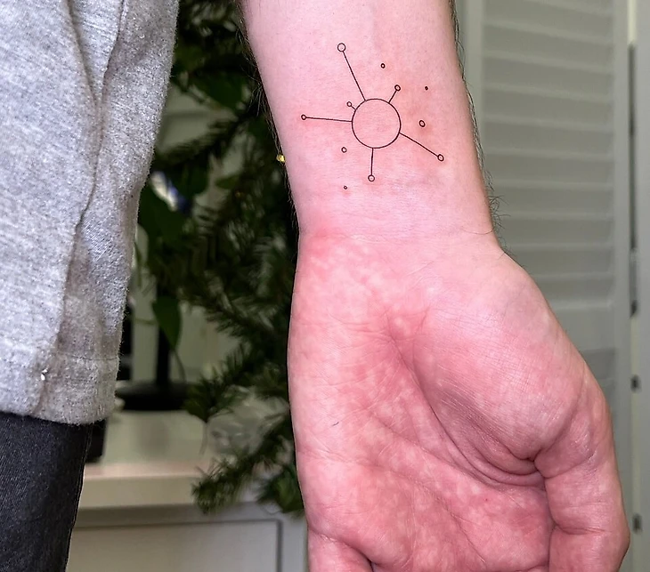 Многие говорят, что татуировка похоже на то, что я граф себе на руке набил. Не тот граф, который в древности управлял крестьянами, а граф [Кибер: Граф — математическая абстракция реальной системы любой природы, объекты которой обладают парными связями]... Таблицу истинности когда-нибудь строил?
