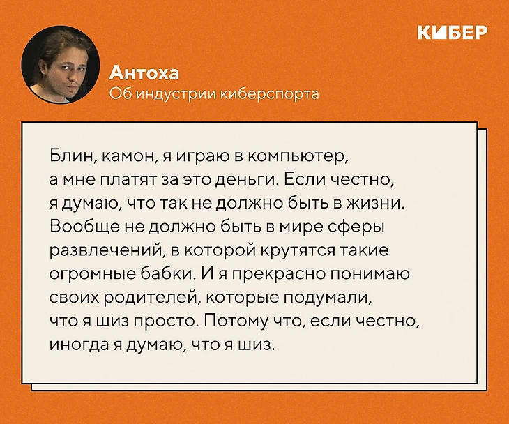 Сейчас уже родители поддерживают меня полностью: смотрят мои игры официальные, звонят всегда после официалок, типа «да, хорош, Антох, я смотрела ты там Рошана дефал, как зверь». Тогда я плохо сепарировался, но с того момента я стал лучше, как человек, и поэтому сейчас такого точно не произойдет.