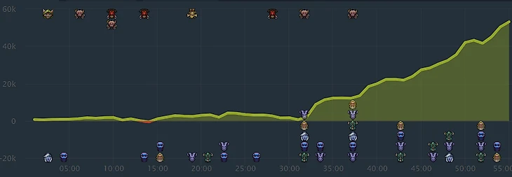 Именно третий тип матчей – самый распространенный и самый противный. Помните график матча из начала поста? Я таких могут привести с десяток, и везде будет одна и та же картина: первые 30 минут матча никак не влияют на его исход.