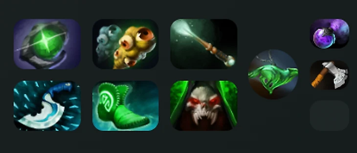 По предметам тоже ничего сложного. По словам Сикла, ключевая задача Кентавра – купить Блинк. Далее – ситуативные предметы. На линию берем много регена и Ring of Protection или Стики по ситуации. Дальше добиваем Сапог, апаем его в Транквилы и копим на Блинк. Вот такие предметы нафармил Мипошка к концу игру: