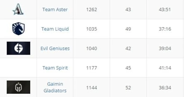 Во-вторых, GG – лучшие по количеству добитых крипов на команду в минуту. GG при средней длительности матча в 39 минут забирают 1144 крипа с карты. Это на 104 больше, чем у Liquid, у которой матчи игрались дольше! Team Spirit требуется на 5 минут дольше для таких же крипстатов.