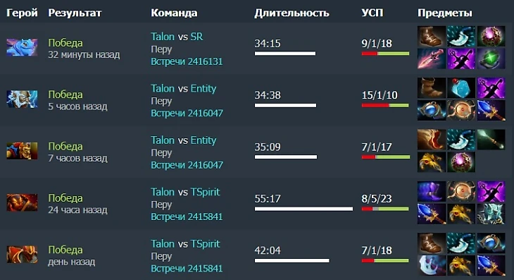 Разумеется, Пак – не единственный герой индонезийца. Вот как он уничтожил противников в последних нескольких играх (на момент написания статьи Микото играл вторую карту против SR). Причем в каждом из этих матчей Talon считались аутсайдерами.