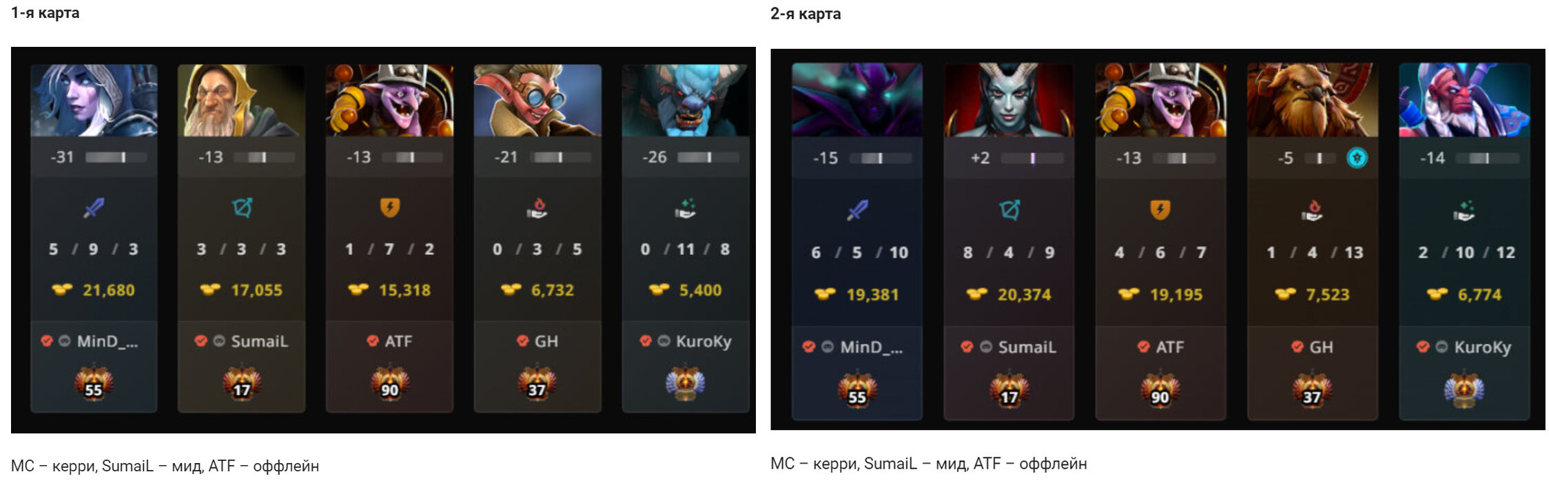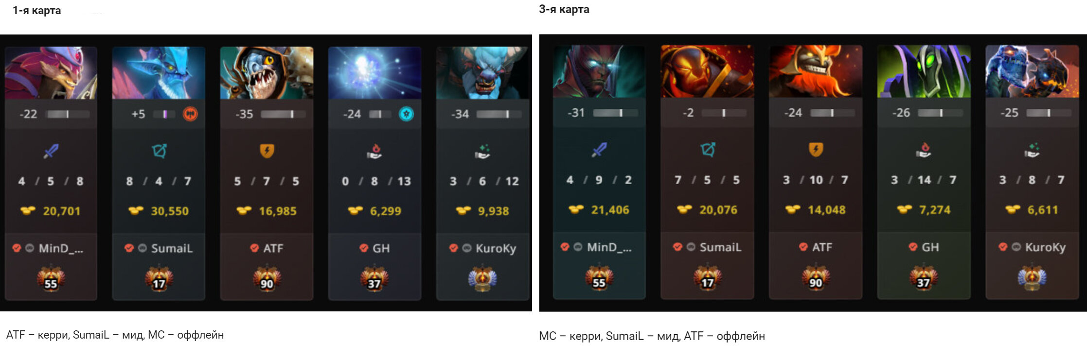 MC – керри, SumaiL – мид, ATF – оффлейн.