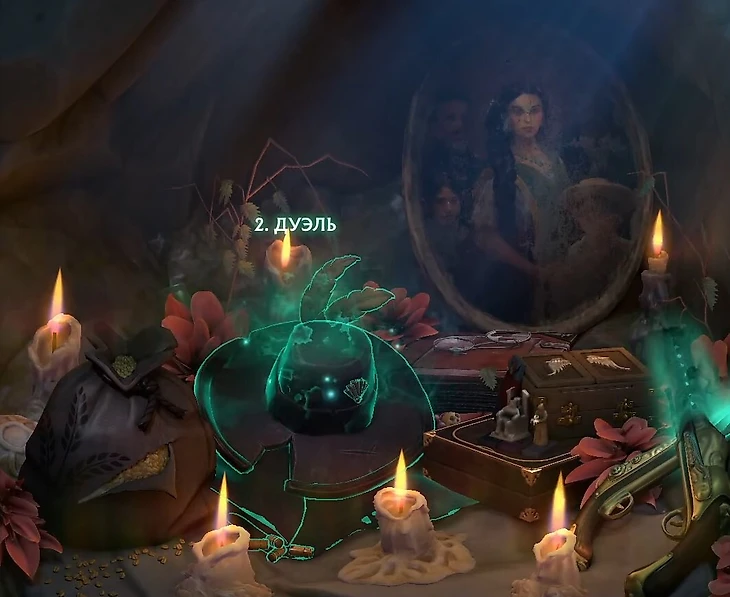 Падение FPS в самой игре вызвано прекрасной заставкой Муэрты в главном меню. Той самой, с алтарем, на котором стоит портрет семьи Муэрты, мешок, шляпа, ящик и пистолеты. Если нажать на эти предметы, вам откроется стихотворная повесть об истории героини.