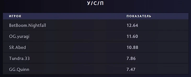 Начнем с его KDA – там классический для «идеалыча» топ-1 на турнире. И нет никаких сомнений, что так продолжится до конца турнира, даже если у BetBoom все пойдет не по плану. Такой уж у Найтфолла стиль игры, что даже на оффлейне он играл с KDA 40, а уж на керри...