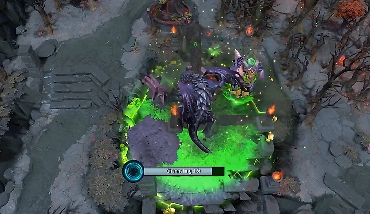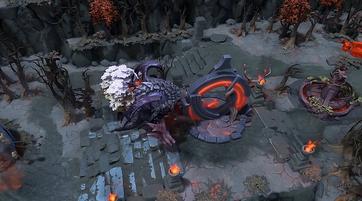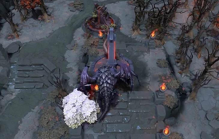 C патча 7.33 рошпита на карте два. И при смене дня и ночи Рошан проходит через Парный портал из одного логова в другое: днем он живет на стороне Света, ночью – на стороне Тьмы. Проходя из логова в логово, Рошан расталкивает всех вокруг и быстро доходит до портала, откуда телепортируется на противоположный край карты.