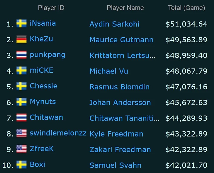 Инсэйния, кстати, тоже был в том составе. Уже в 2012 они играли вместе на высшем соревновательном уровне и посетили десятки ланов! Кстати, Insania, – вообще самый успешный игрок в проффессиональный HoN в истории. За карьеру он заработал более $51 тыс. В этом же списке на 4-м месте находится Мике, а замыкает десятку – Бокси. Его вечные тиммейты – тоже не последние люди в истории профессионального HoN’а.