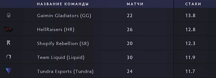 Gladiators – снова лучшие в мире по количеству стаков в среднем за игру. Команда делает почти по 14 стаков на новой огромной карте, и в этом особенность команды. Мы отмечали ее еще на лимском мейджоре.