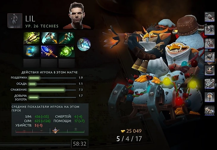 Илья просто делал свою работу, простые Techies things: кидал и ставил минки повсюду и в драках, врывалcя с Blast Off. И таким образом он нанес ~41 тысячу урона – третий результат на карте после керри ТБ и Лайфстилера.