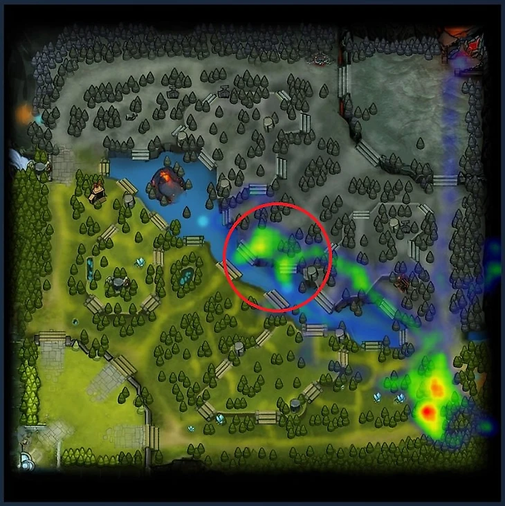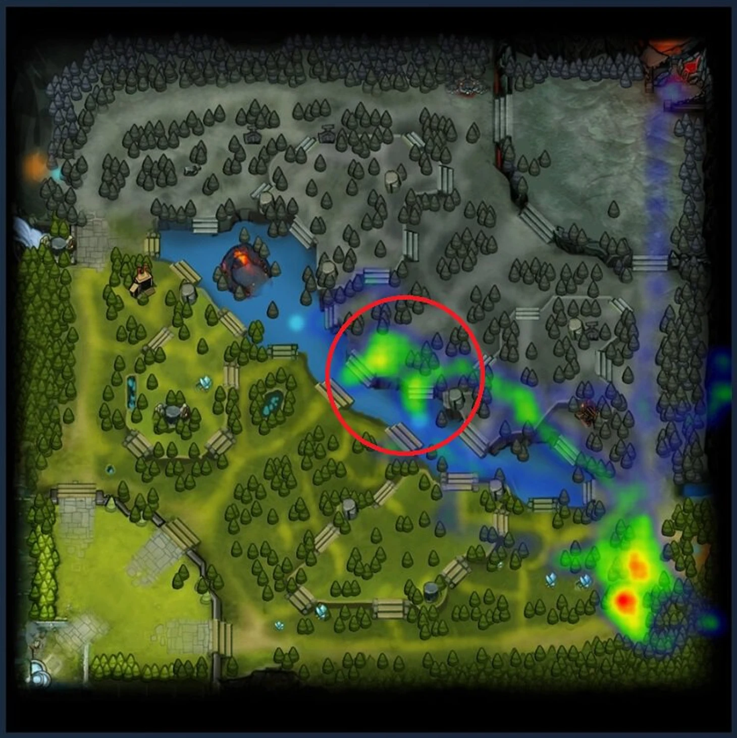 В сложную Илья больше не возвращался. Все это можно наблюдать на тепловой карте Лила в первые 10 минут игры.
