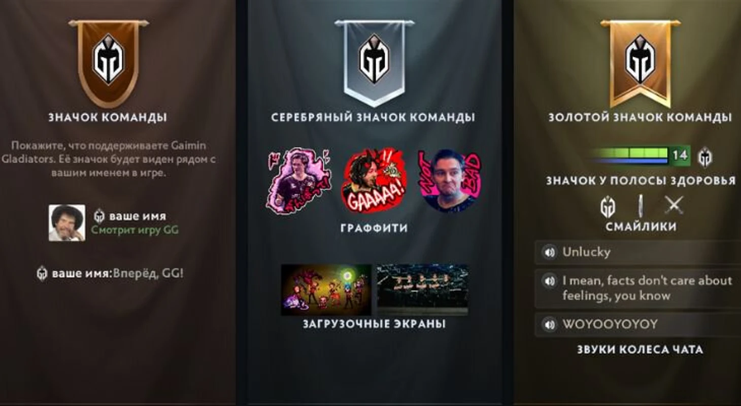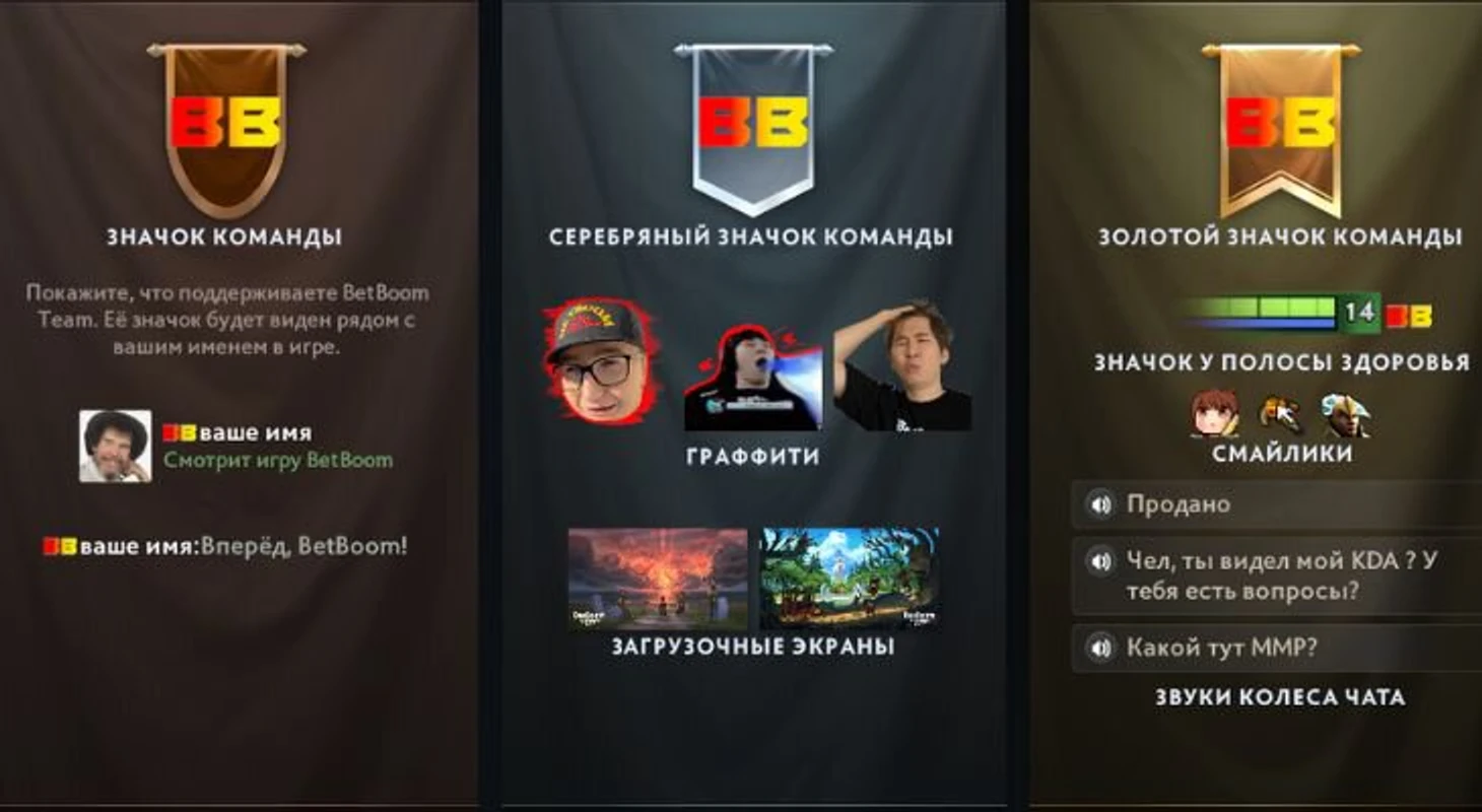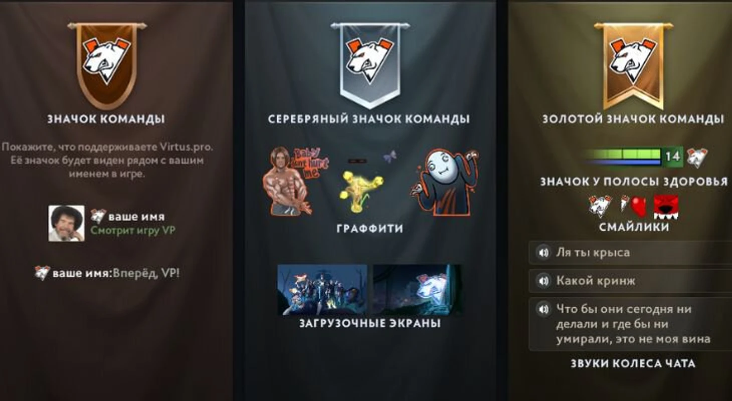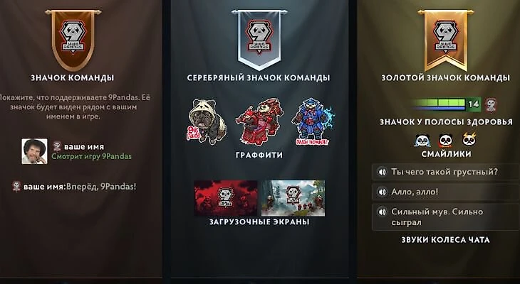 Отмечу «Алло, алло» от Рамзеса и «Ты чего такой грустный?» от Соло. Уверен, мы не раз услышим эти фразы во время DPC-лиги. Кстати, в бандле снова есть собака Марии Гуниной – теперь в уже граффити!