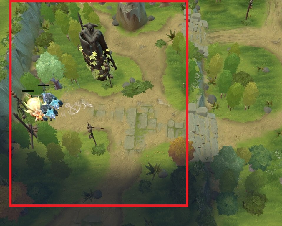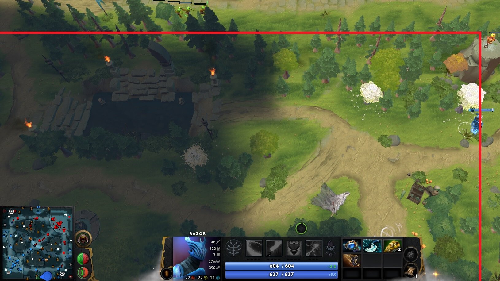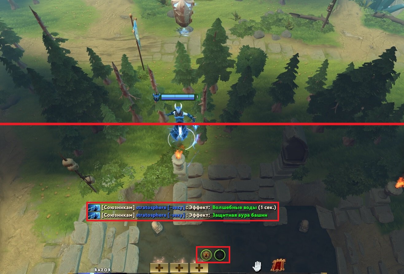 Кстати, область частично накладывается на радиус башни сил Света, поэтому герой Рэдиант дальнего боя может фармить под действием сразу двух бонусов! Например, условным Разором можно сагрить нейтралов Плазма Филдом, регенить ману и здоровье, и получать броню.