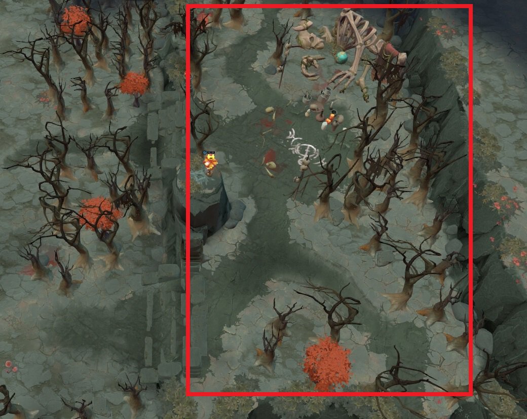 Находится на правом краю карты, справа от сложной линии сил Тьмы, между первой и второй башнями. Визуально отмечена огромным скелетом над лагерем древних. Дает бонус «Сила скелета»: +5 к урону. Область включает в себя один древний лагерь.