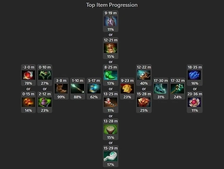 Смотрите, вот самая популярная сборка на Мирану – одного из самых популярных саппортов патча – на Протрекере: