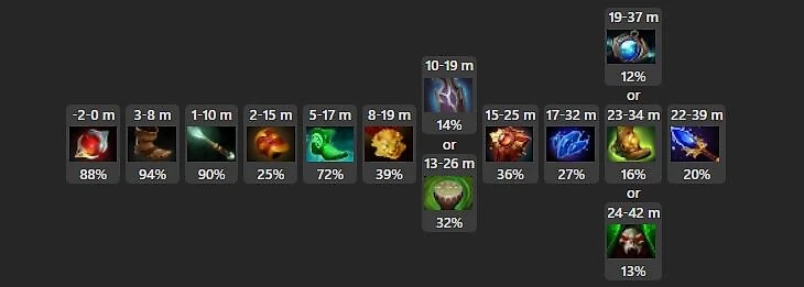 Отмечу еще один интересный момент: Венга, у которой 295 скорости передвижения, – далеко не самый быстрый персонаж в игре, но с таким билдом, в котором мы в разное время покупаем аж 3 (!) Wind Lace – для Транквил, Барабанов и Солара – скорость героя достигает 405 единиц!