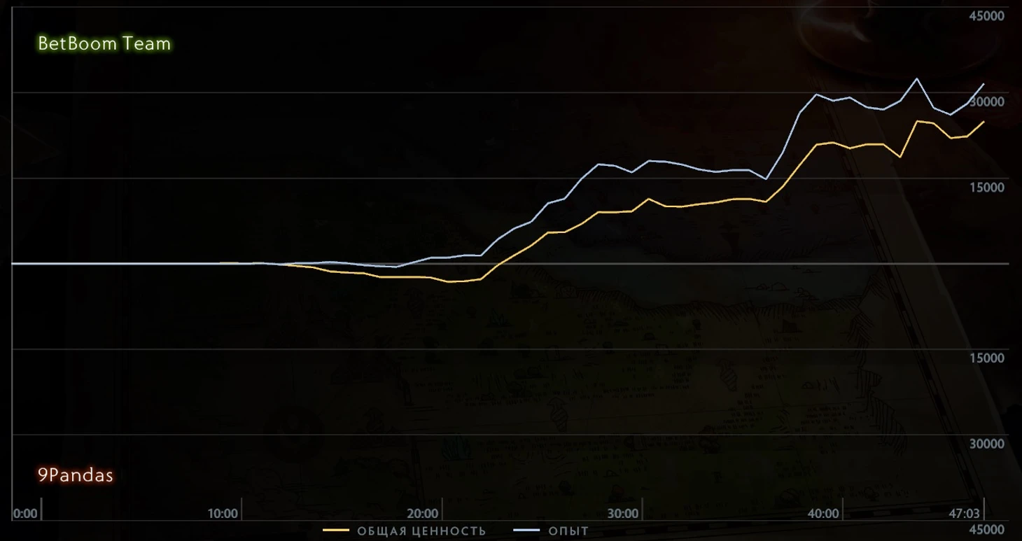 Пьюр сыграл безошибочно. 9Pandas не могли позволить себе ошибаться и должны были давить. Но к началу мидгейма просчитались несколько раз, и к 25-й минуте игра для «Панд» стала невозможной. Следующие 20 минут 9Pandas доигрывали, а BetBoom забирала всех Рошанов и контролировала игру. Игроки BB не умирали бездумно, об этом говорит и итоговый счет: 42:16 в пользу BetBoom.