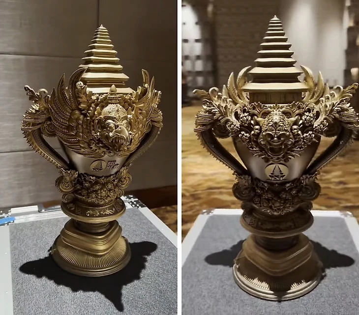 Трофей вдохновлен традиционным резным орнаментом Кекаранган, который часто используется в храмах Бали. На нем часто изображают людей, животных, природу и мифических существ. Образы могут означать совершенно разные вещи, но такие орнаменты, по легенде, защищают от злых духов и вредной энергии.
