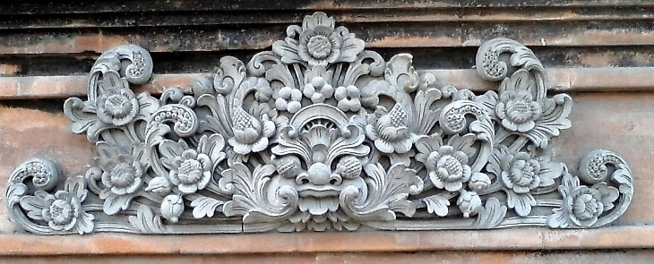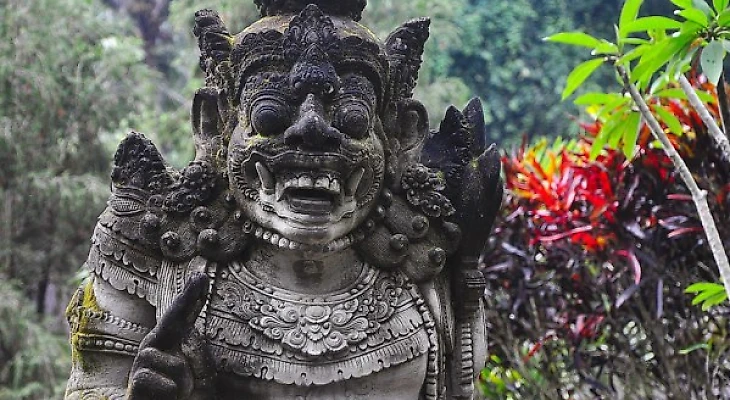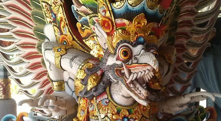 Вытянутая фигура с клювом – царь птиц Гаруда. Это божество из индуизма и буддизма считается национальным символом Индонезии. Гаруда – божественный орел, воин-защитник и враг змей и наг. По легенде, другие божества сделали его мать рабыней, но Гаруда победил в бою каждого из них, даже одного из главных богов Индру (индуистского Зевса/Юпитера/Перуна).