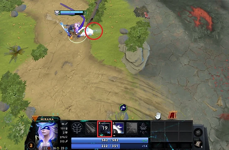 2. Из-за различных хитбоксов самой Мираны, других персонажей и юнитов Starstorm неодинаково срабатывает в радиусе действия. Этот момент разбирал на стриме Singsing – большой мастер героя в далеком прошлом. Радиус атаки Мираны – 630, радиус действия Starstorm – 650. По идее, звезды всегда должны падать на врага в радиусе атаки, но падают они не под любым углом. Это та вещь, которую при игре на Потме нужно чувствовать.