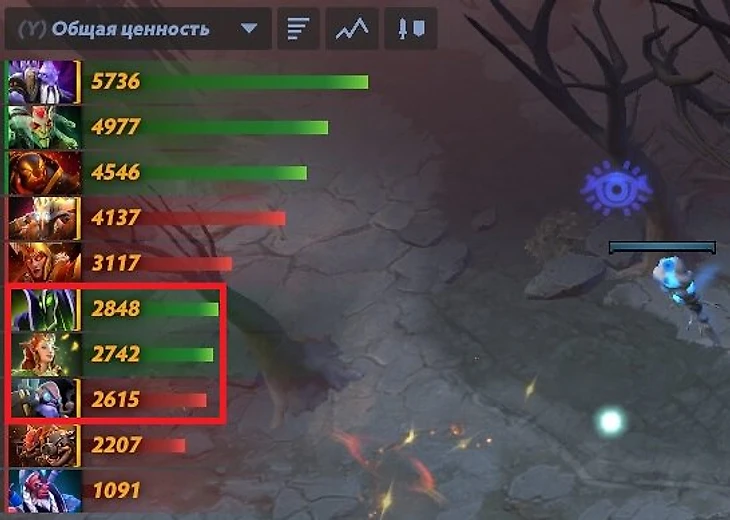 На 10-й минуте нетворс Тинкера составлял всего 2600 золота – ниже вражеских Рубика и Энчи, которые так эффективно задушили мид.