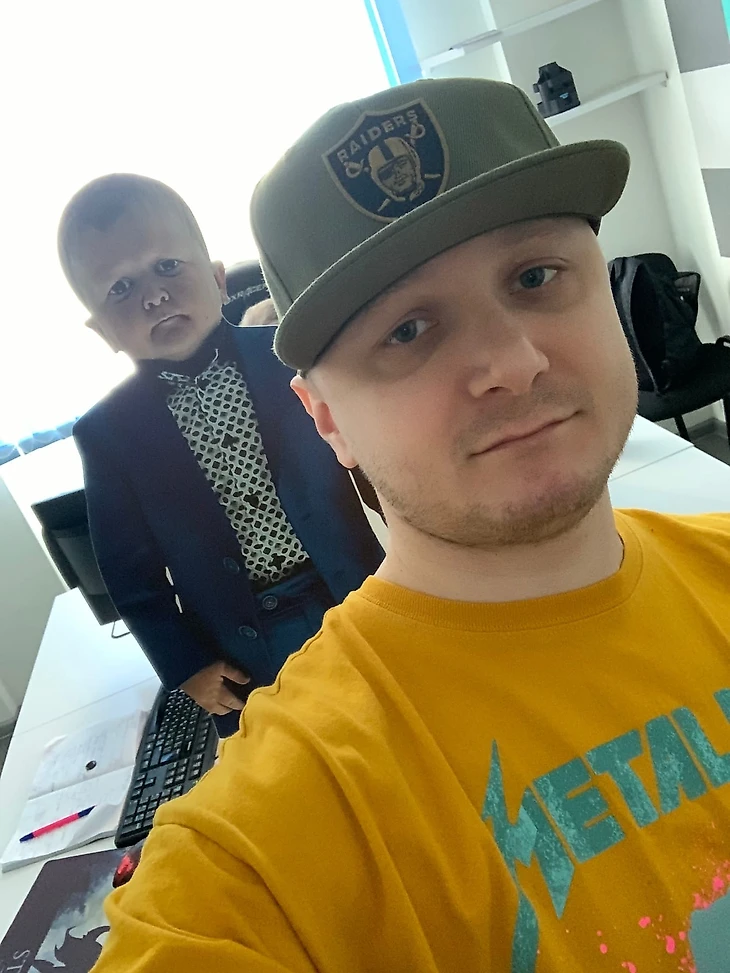 – На самом деле я бы не сказал, что мне прямо захотелось именно с ним аватарку поставить. У нас там просто челы работали в event-отделе. Я не знаю как, но они купили эту огромную картонную статуэтку этого Хасбика. Ну я подошел, сфоткался и выставил. Я не фанатею от него, если что.