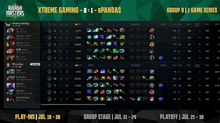 В первом же матче Рияда Глеб съел Xtreme Gaming с потрохами! 22/0/4 за 20 с небольшим минут. Поздравляю всех, кто взял его в фэнтези!