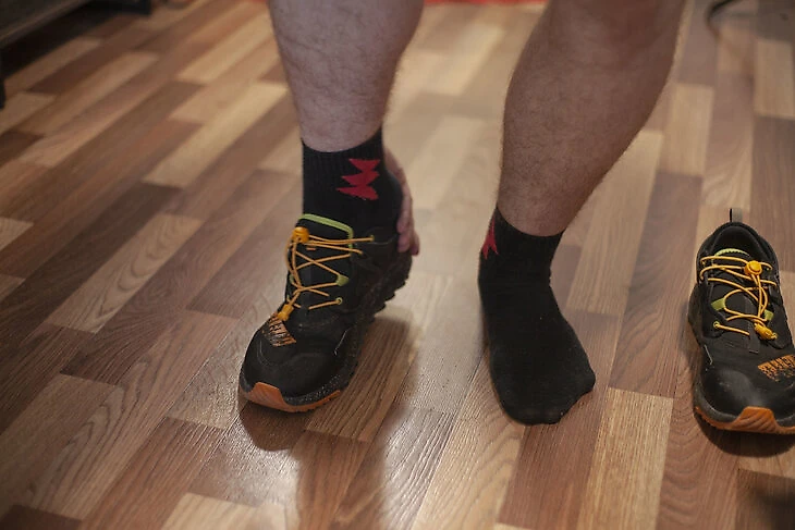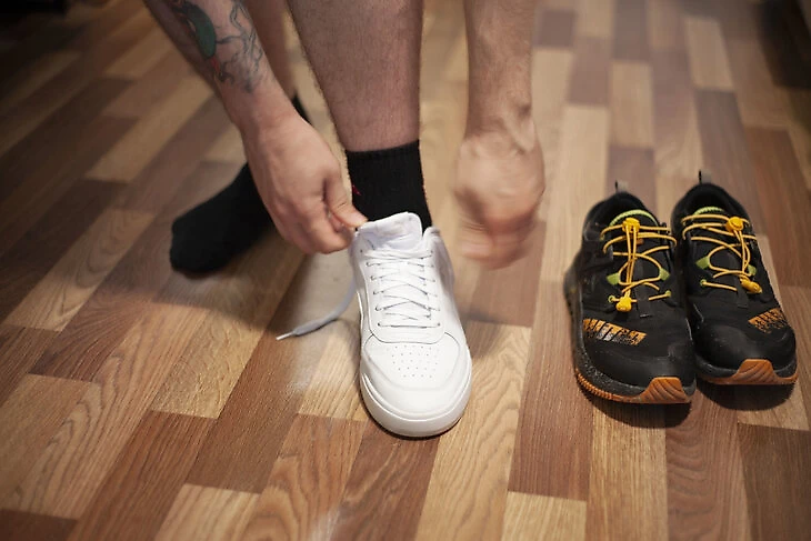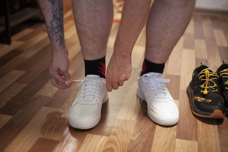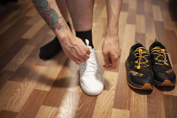Шаг 4. Надевайте новую обувь на ту ногу, с которой вам комфортнее начинать. В таком щепетильном процессе важно быть в комфортных условиях, чтобы не шуметь.