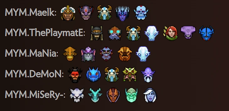 Сравним героев команд из топ-4 The International – EHOME, Scythe и MYM.