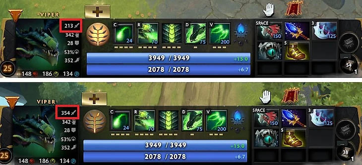 У Вайпера на 25-м уровне появился интересный талант: «Герой становится универсалом». И вообще-то Вайпер всегда покупал хорошие предметы для универсалов: Пику, Манту, Скади, Аганим или Бабочку. С такой сборкой и новым талантом его урон увеличится на ~150, что очень много.